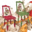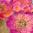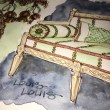 Above, the palm scraps. These fabrics all had a palm or butterfly pattern on them, except for the strip of cream on the bottom. It is a sort of mini-quilt, with embroidery.