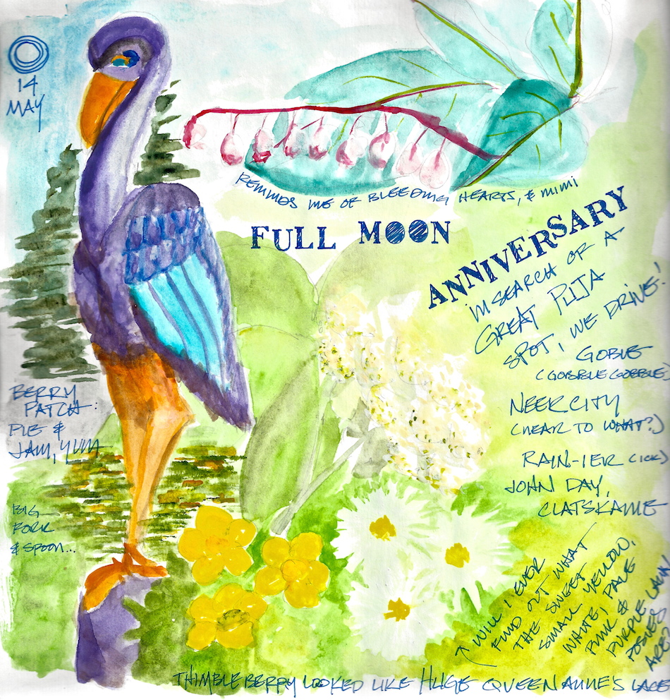 W14 5 14 ANNIVERSARY2 1 W14 5 14 ANNIVERSARY3 2Holding hands with Mitchell, exploring, being quiet with each other, both in the dense forest and on the beach.  Wandering time is  important to my mental health.  Standing with our toes in the ocean was such a treat. We could find no place that would allow us to have even the small fire of our puja, and so, we did a water puja on that very hot day.