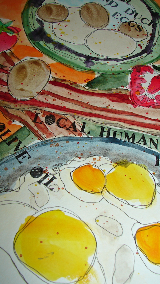 When I am not planning on lolling in bed with cats and husband, I get up, throw painting clothes on before showering, and head for my little studio. I breathe in the colors. Seriously. That is my meditation! Other people can pride themselves on their limited palettes but I love paint. I leave a bit of an unfinished drawing or painting on my desk (or if writing, an unfinished piece) then I can drop right into it. I love silence in the morning, a thought that at any other time is anathema — but maybe it is because loud music is not permitted early!