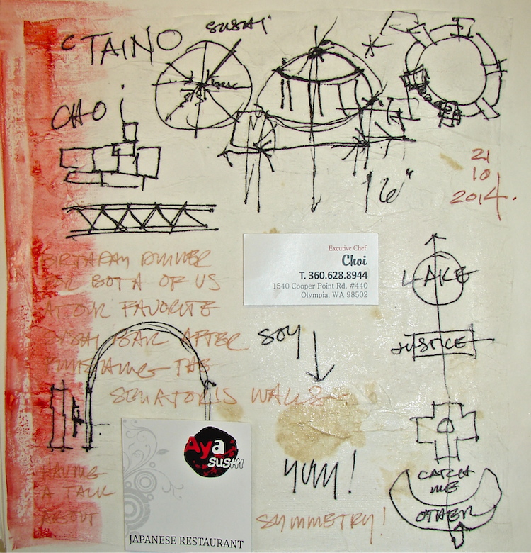 Oops lest I forget, my favorite part, the company of my husband. Talking with pen in hand.