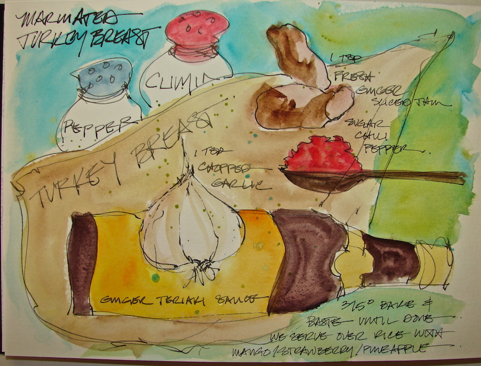 Marinated ginger-garlic-chili teriyaki turkey over rice and BBQ anything.