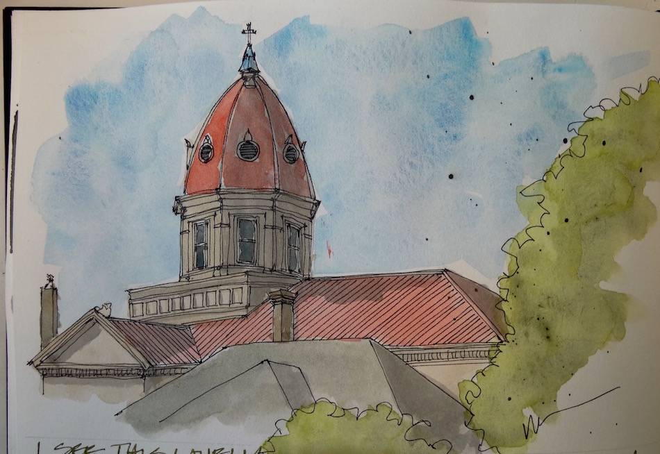 This is the first time I’ve put Steven Reddy‘s suggestion from his Craftsy class to work. While mine is not perfect, I like this manner of adding shadow with a diluted waterproof ink before adding watercolors, and am happy with this first attempt.