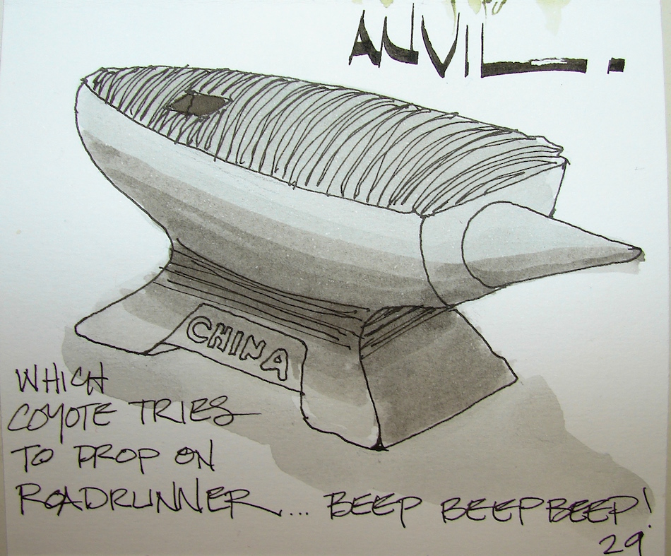 He has to anvils and I stole that one to sketch. In fact, even though I told him he might find missing tools on my table he continually forgot! Tools are cool things — I enjoy going to garage sales with him hunting for old tools!