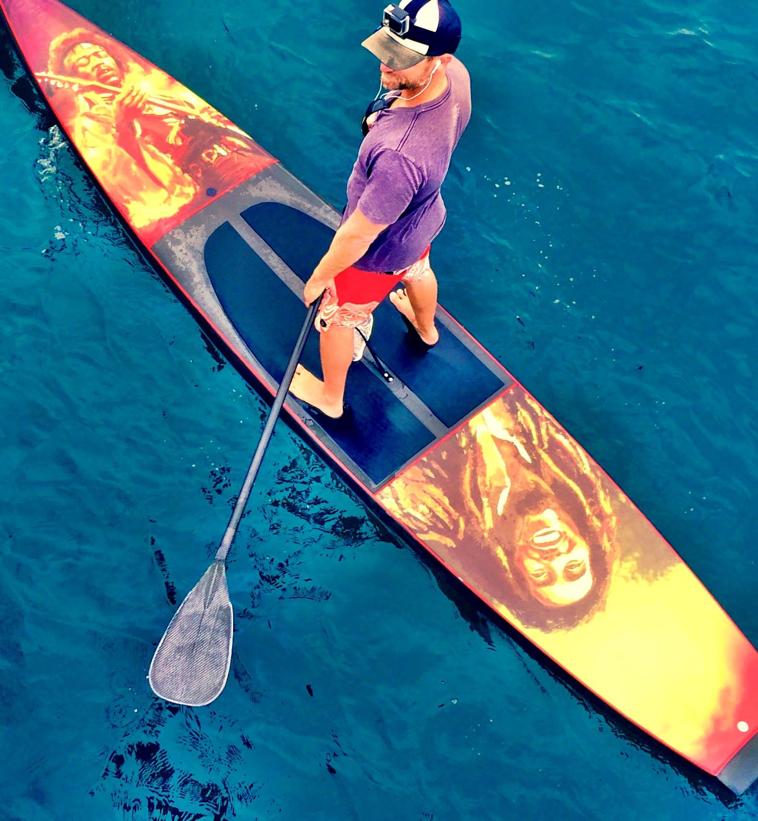 Rich German lives in my home-town, Laguna Beach, and loves the ocean’s creatures. He garnered international attention from his video of a close encounter with a pod of orcas. (Board and Rich shown right.) He garnered the attention of some of the leading conservationist organizations in the world including Save The Whales. This led him to start Project O whose mission is to help restore, protect and sustain the ocean, the life living in it and all of humankind, now and for generations to follow. The initial vision is to see the entire coastline of California protected.