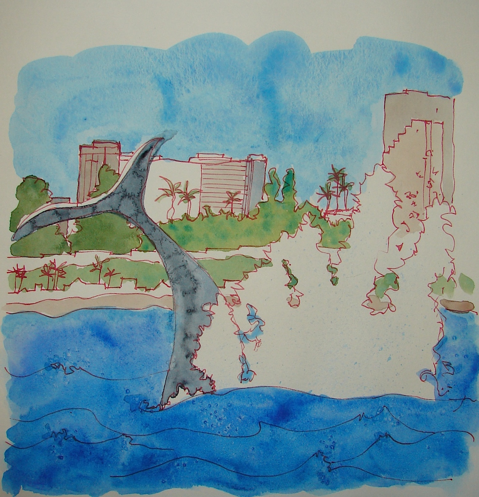 I used Daniel Smith Masking Fluid, White Pitt pen, salt, and any other trick to create the illusion of waves and splashes. Primatek Lapis helped deliver the moody skies and water. Aquabee Super Deluxe Journal with a Pentalic 2B woodless pencil, Platinum Preppie pen with De Atramentis Document ink, and Daniel Smith, Holbein, and QoR watercolors.