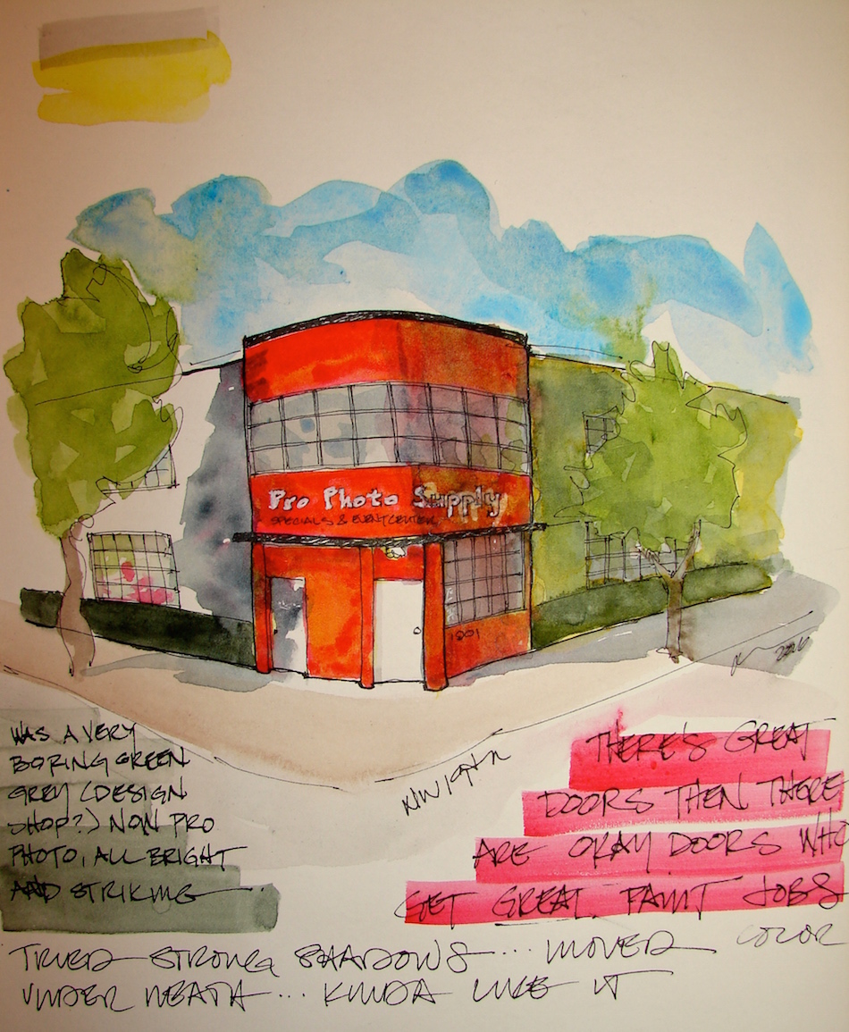 Around the corner from the main Pro Photo shop on 19th is the new-old building, where they’ve taken a dull green-grey corner at 18th and Marshall and brightened it up.