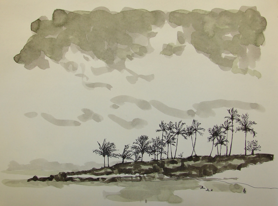Moleskin 8×11 watercolor journal, Platinum Carbon pen,