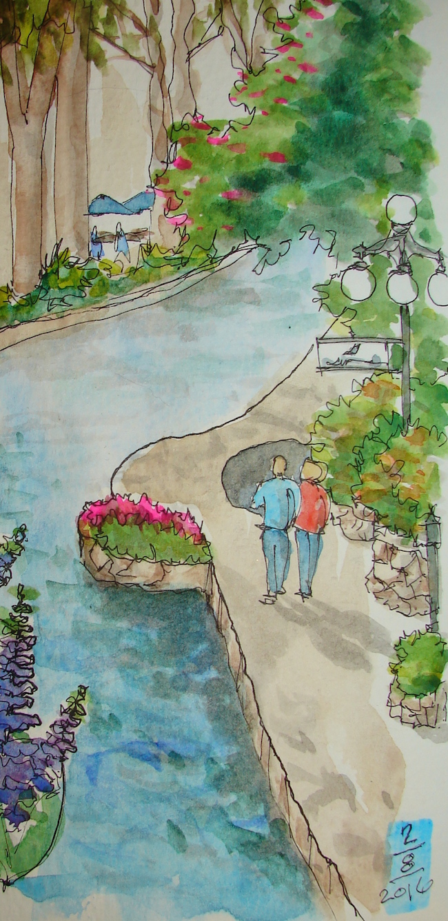 I love the colors and your free fast sketching, Katie. So pretty! I’ve heard the River Walk is very lovely, but I only have been as close as the airport on a layover.