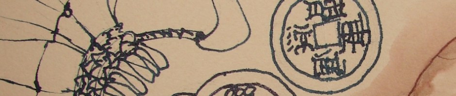 Drawn on handmade Canson folding journal with Jinhao pen with blue Diamine ink,