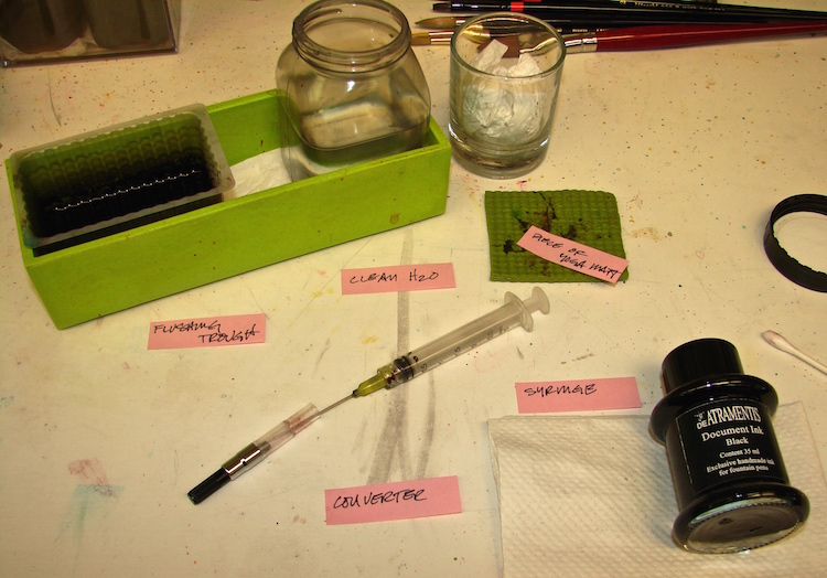 w16-goulet-syringe-insertedIf pens need flushing with water before I refill with ink (sluggish feed —