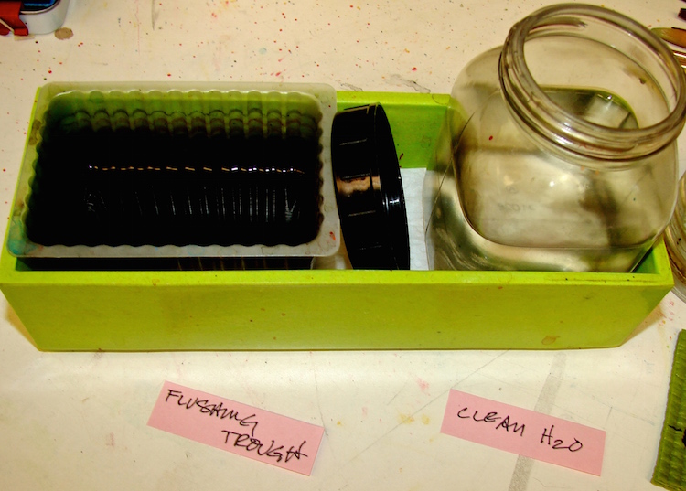 you’ll know it when you’ve got one) I use the bulb syringe, right, and the desk setup above to grab clean water and flush into the trough to clean it on the spot.