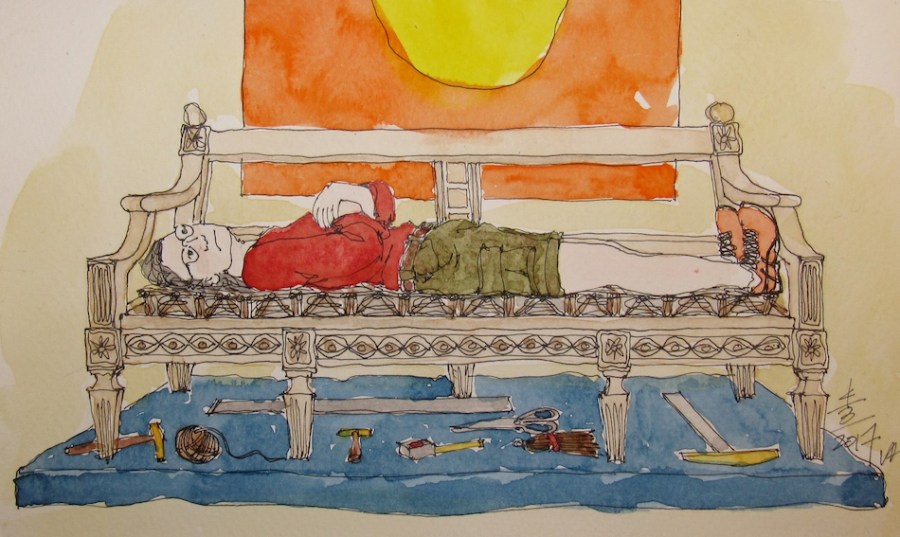 Mitchell lay down on her long sofa.