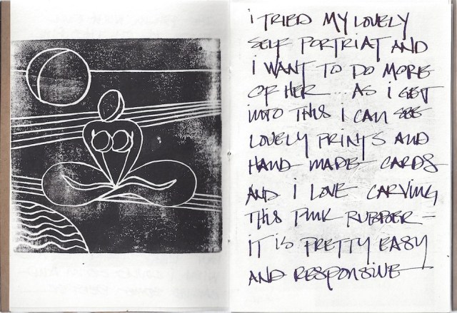 I love, love the self portrait! We did this in art class in high school and I found intriguing. We used thick pieces of rubber “sheets” that we carved for the stamp. I had forgotten all about it till now.