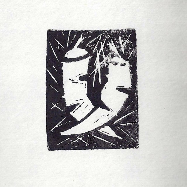 Linoleum or rubber block, Bristol, handmade papers, shellac, printing ink