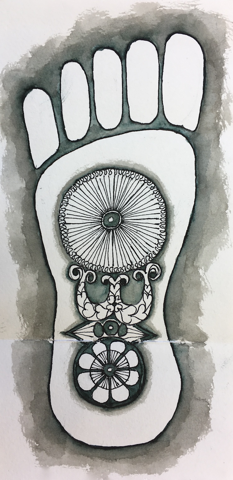 But I don’t want to draw my feet, so Buddha’s feet are my choice.