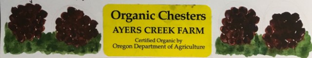 If you are in Portland and you hear people at the grocery store asking, “Any more Chesters coming?”, it is a heavenly blackberry from Ayers Creek Farm.  Sadly, the end of the Chesters was Monday, but I have nibbled them plain and heaven is the word!
