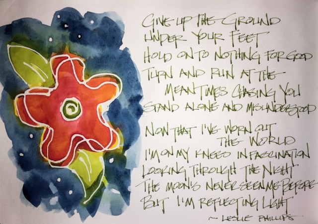 I don’t know where I caught the snippet of a poem which was a song not a poem