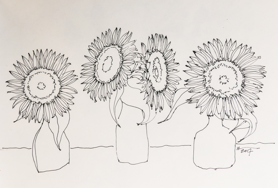 Inktober, 16 Four Sunflowers