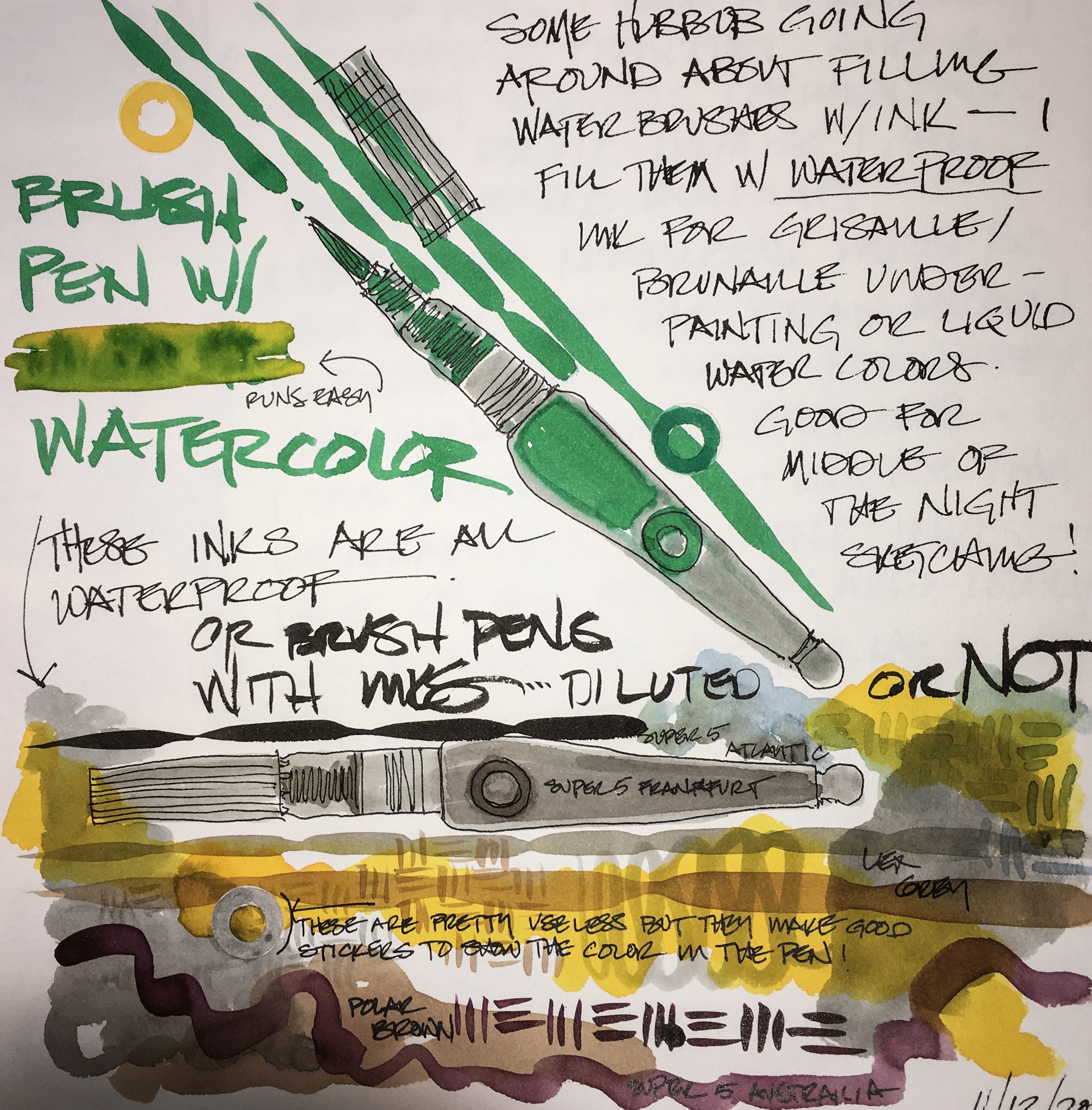 hubbub about putting inks in waterbrushes… They sell inked waterbrushes (Pentel and Wink I like best), and I have been doing it since