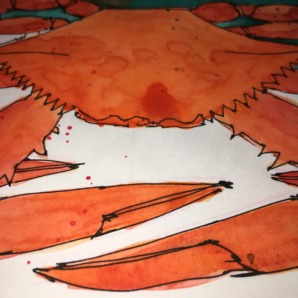 3. It sounds like you had a wonderful day. I love the texture of the crab that you’ve achieved with all the pigment blooms.