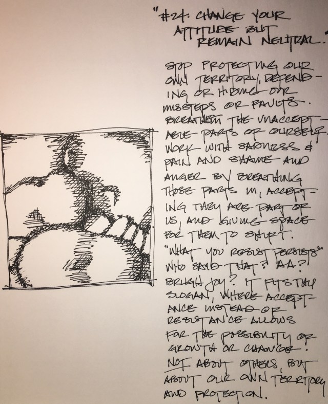 Anyhow, it was about not defending, but leaning into whatever harshness was coming up. Instead of defensiveness and guarding your territory,