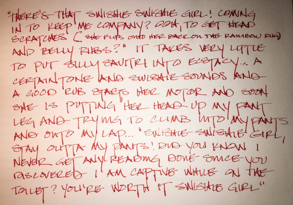 HA! Kate I love this post! My furry friend is always Johnny on the spot to catch a good rub whenever I’m in the bathroom. I’m traveling this week and already miss her 😦