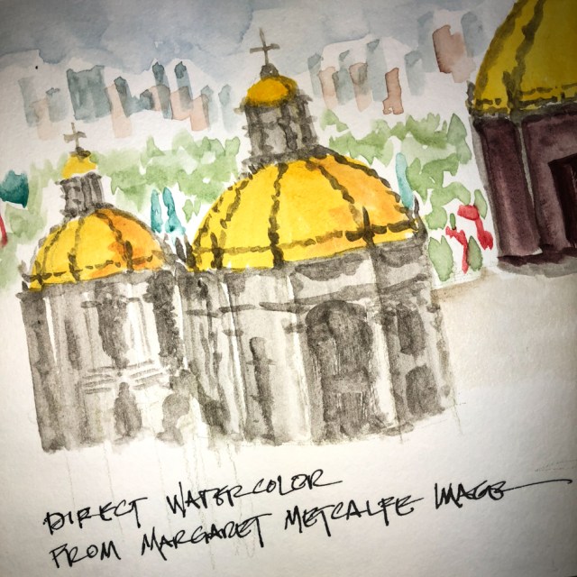 The idea is to begin to paint directly with no inking and no real pencil work.  (I cheat.)
