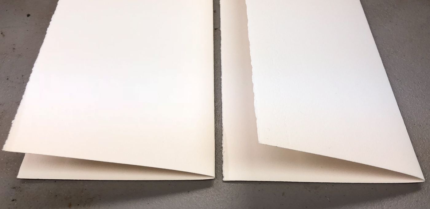 The 20×30 Fabriano sheet made four journals, above.