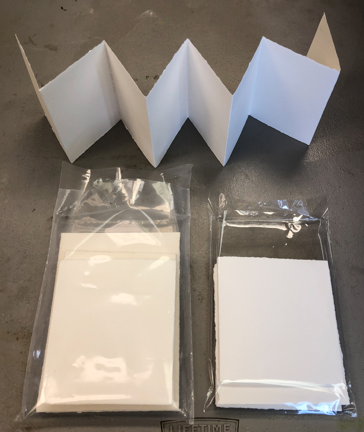 one 5.5 x 7.5-inch 4-panel (or 8 with each side) landscape type;