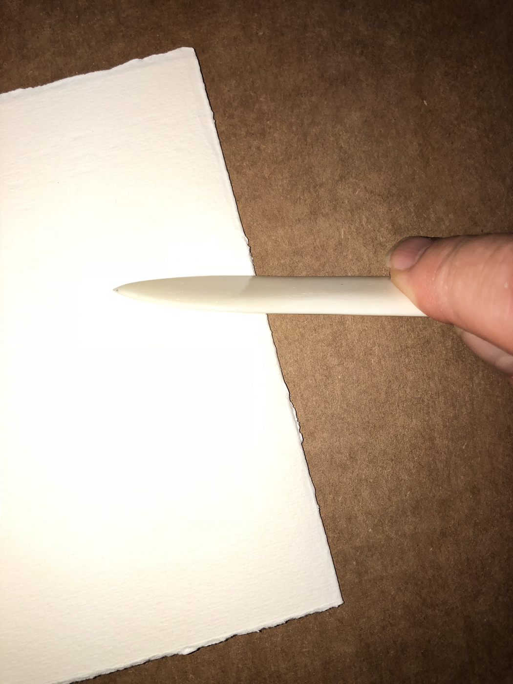 Final hard fold should be done with a bone folder, right, but if you don’t have one use the outer edge of scissors or a fat sharpie.