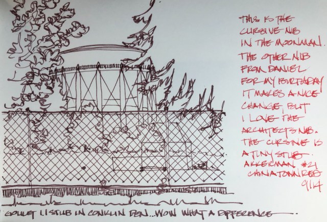 The dang Conklin nib is sooooo awful, I switched it between sketches.