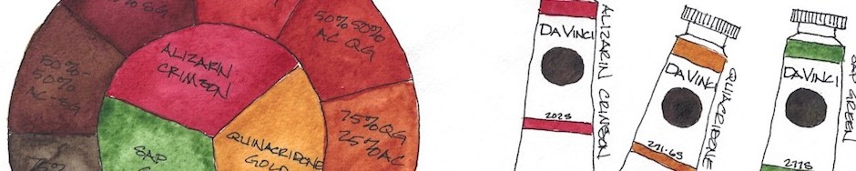 Quinacridone Gold,  Alizarin Crimson and Sap Green