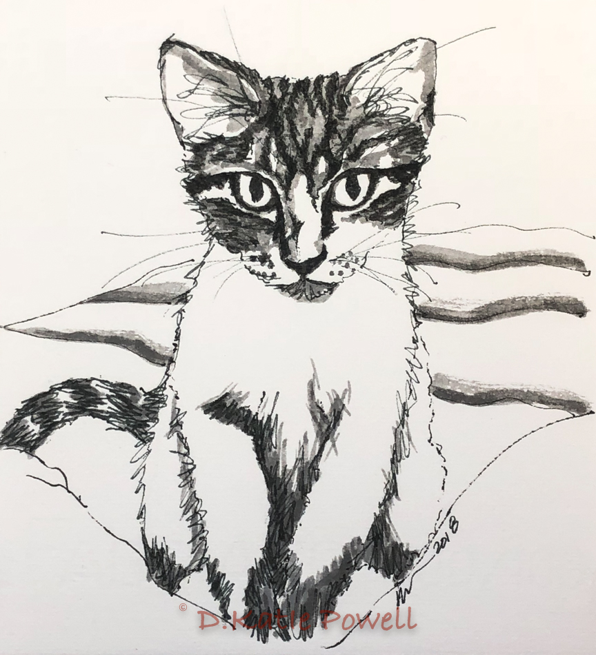 These are sketches from when Fred aka Hari aka Terror-Tiger was a foster kitten, lovingly taken care of by a responsible young man who did not want to let him go.  They allowed me to use the images they took of “Fred.”
