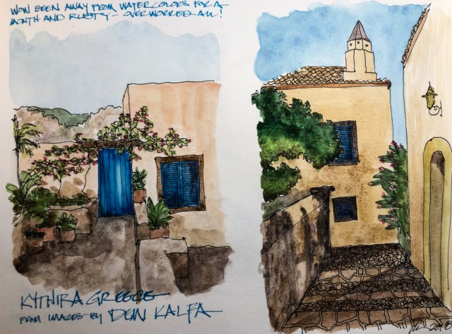 This sketchwalk of Kythira, Greece is from beautiful photos from Demi Kalfa!