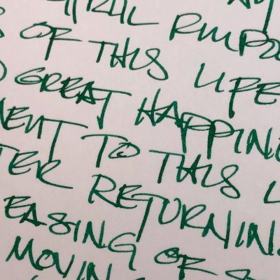 It’s gone. After I bent the plastic nib that holds the metal nib I threw the whole pen away. I’ve got the Platinum carbon one to learn on now, before I purchase another Lamy.
