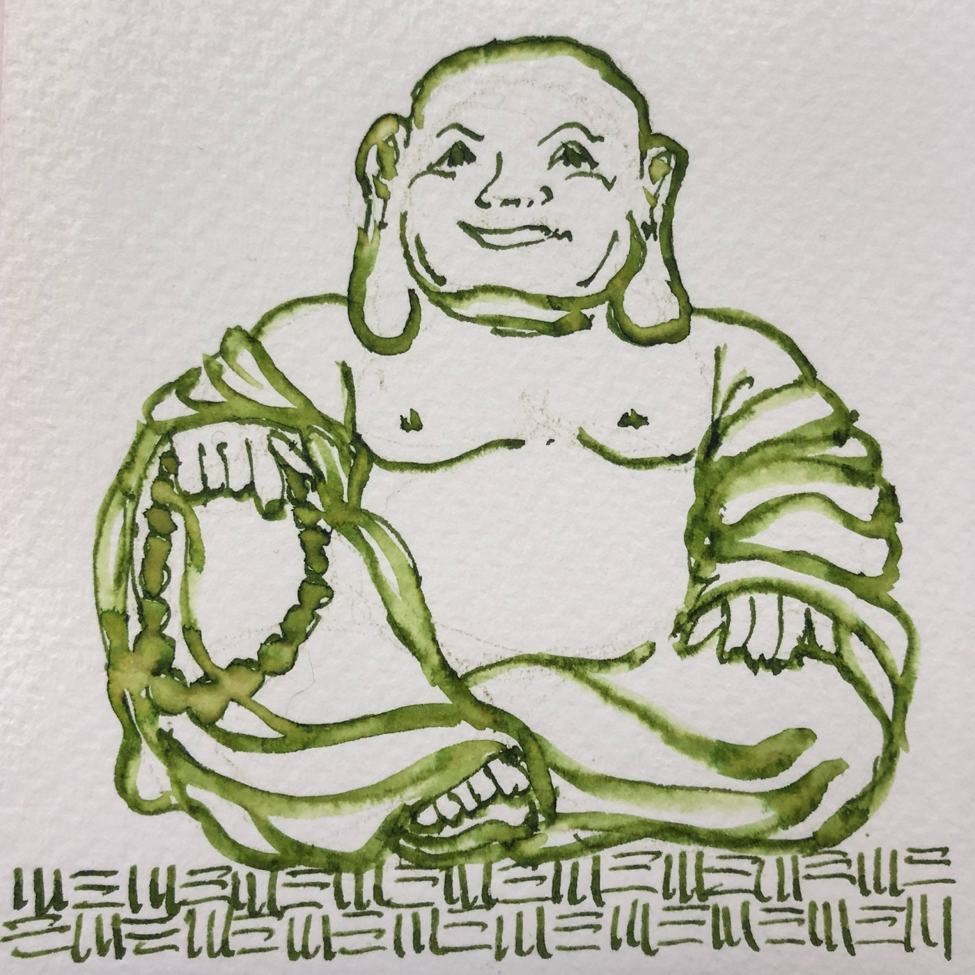 Sketched the loose lines of Hotei Buddha in Robert Oster Jade ink.