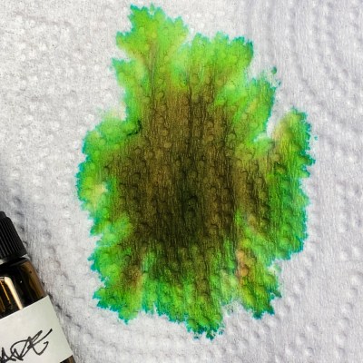 When the ink is dispersed on paper towel and water added, the electric yellow come through stronger!