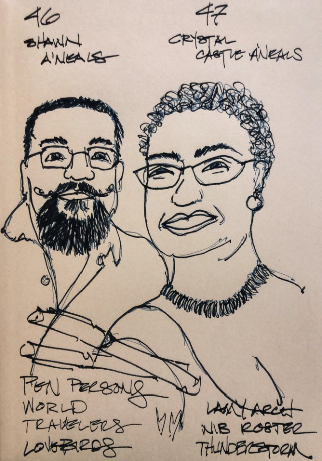 people sketches (pen people!) with a Lamy Vista with a 1.1 stub nib;