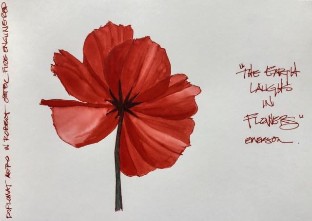 I sketched this bright red flower, then touched the waterbrush to the lines,