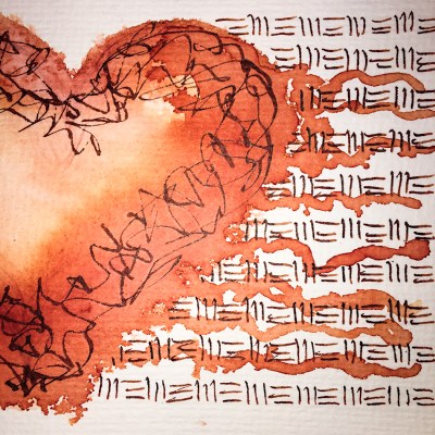 This heart on Strathmore paper shows off the ranges… The piece was drawn, the water used to push the inks, and finally the squiggles and lines were reasserted after.