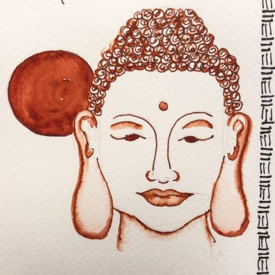 Lovely Buddha with Moon gives an idea of this ink on watercolor paper,