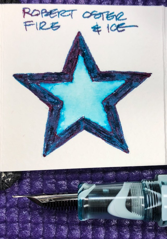 Moonman Wancai with special grind architect’s nib with Robert Oster Fire and Ice ink,