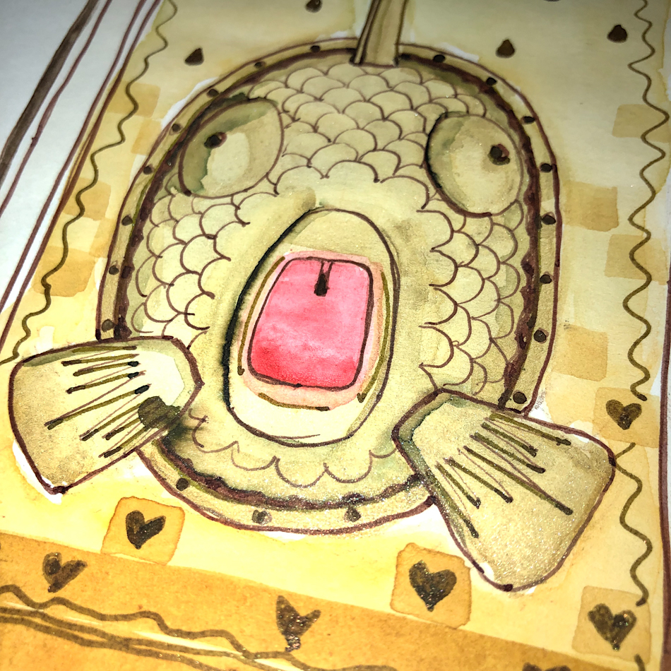 I rarely use gold-iridescent paints and inks, but this called for it!