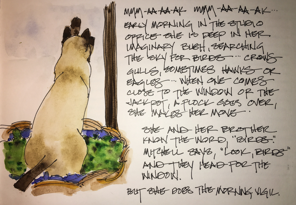 Both Yaman and Savitri watch birds; the studio windows are by far