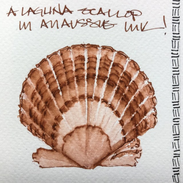The scallop shell was drawn with a TWSBI Eco 1.1 on cold press watercolor paper,