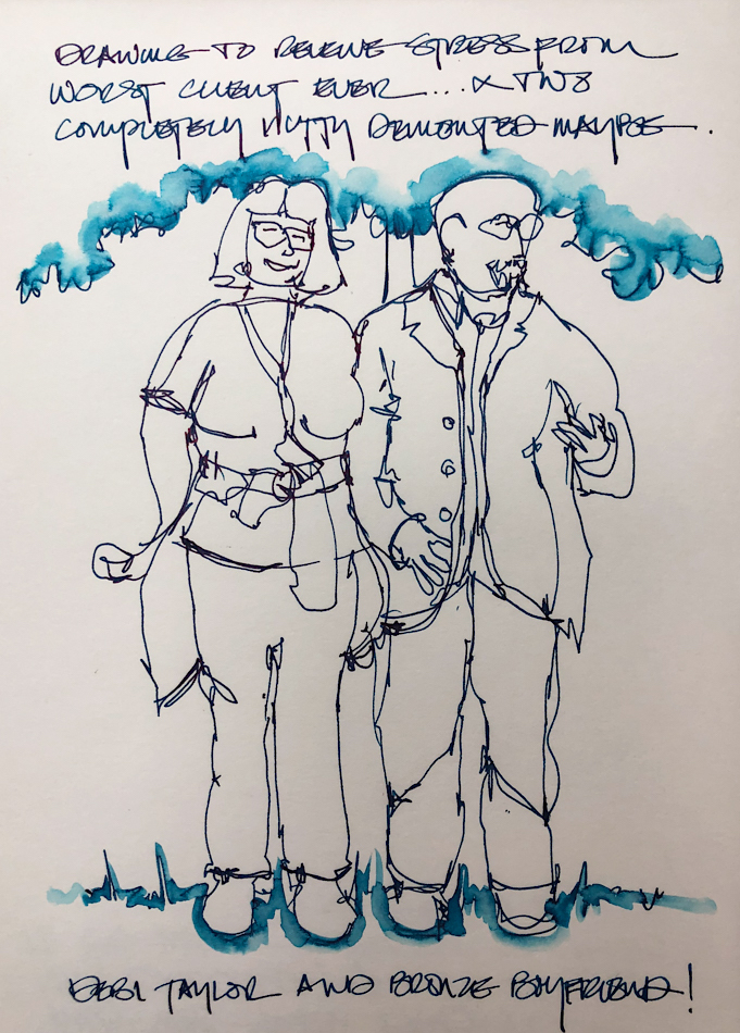 Contour drawings are fun, and for me, stress relievers.