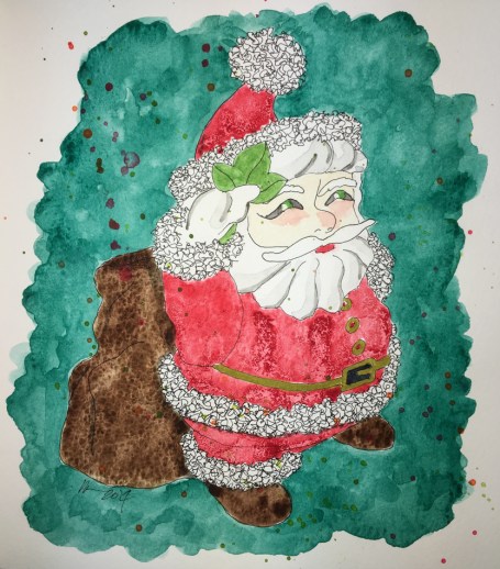 Above, Mitchell’s Mom’s Santa; below, my Mom’s Santa.