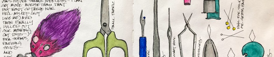 So I forced myself to draw my sewing stuff… meh… but I did draw. and the colors move me a bit… and watching Mitchell