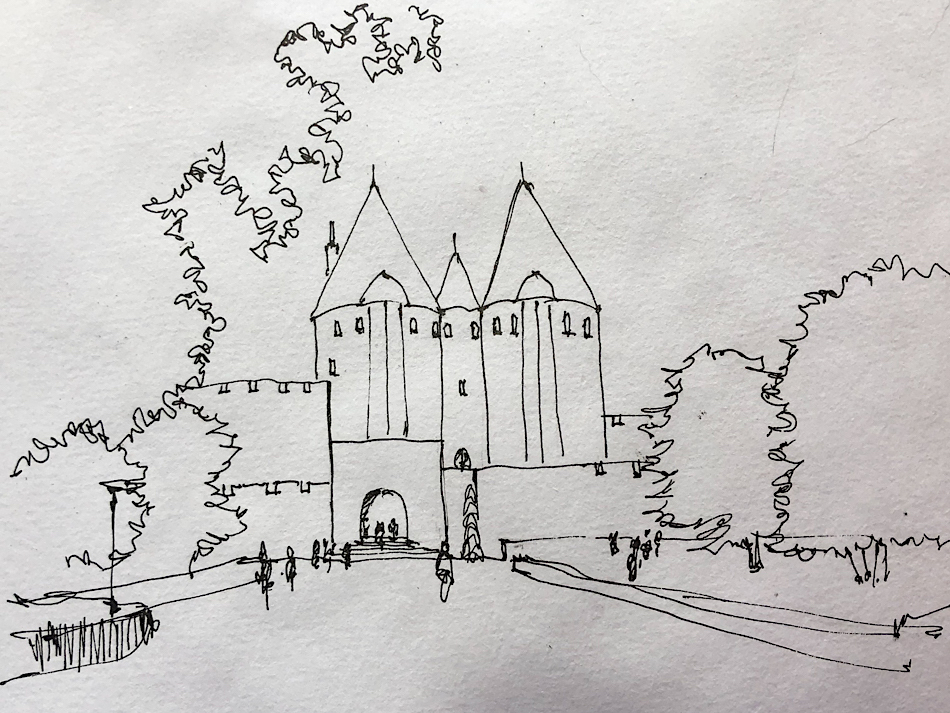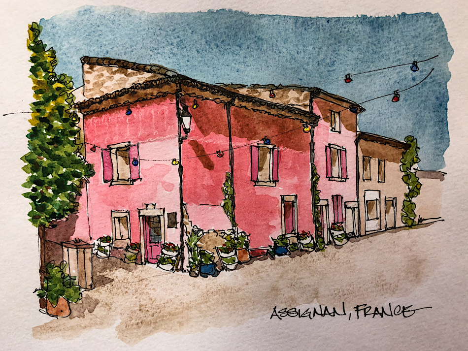I want to take my watercolor sketching to the next level. I feel I was able to achieve that in the image above. I’m happy with shadows, building color, and my loose style; my sky is so-so. I am generally happy with the outcome but I am