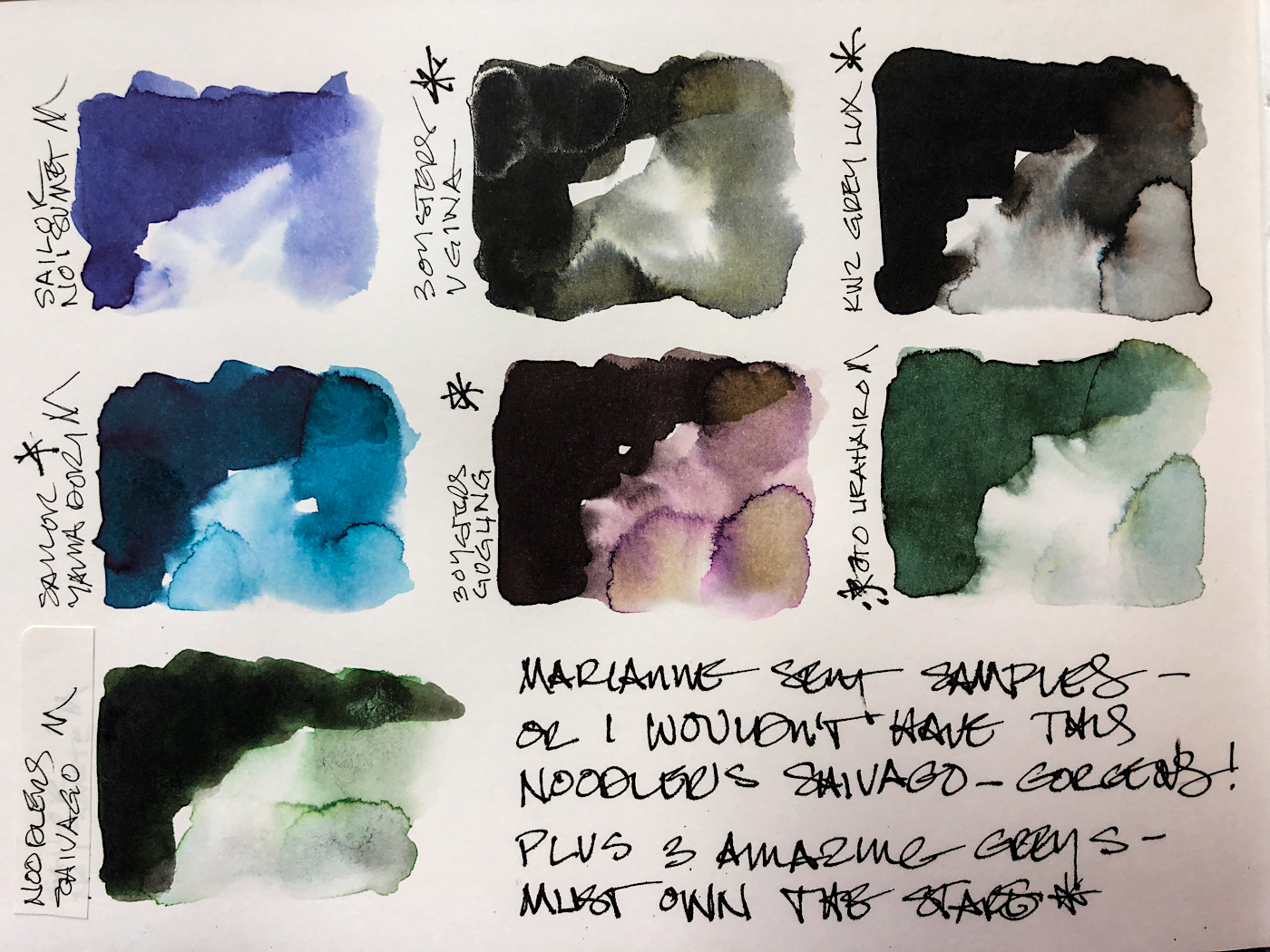 This is a mysterious smokey then surprisingly bright ink… Totally love it!